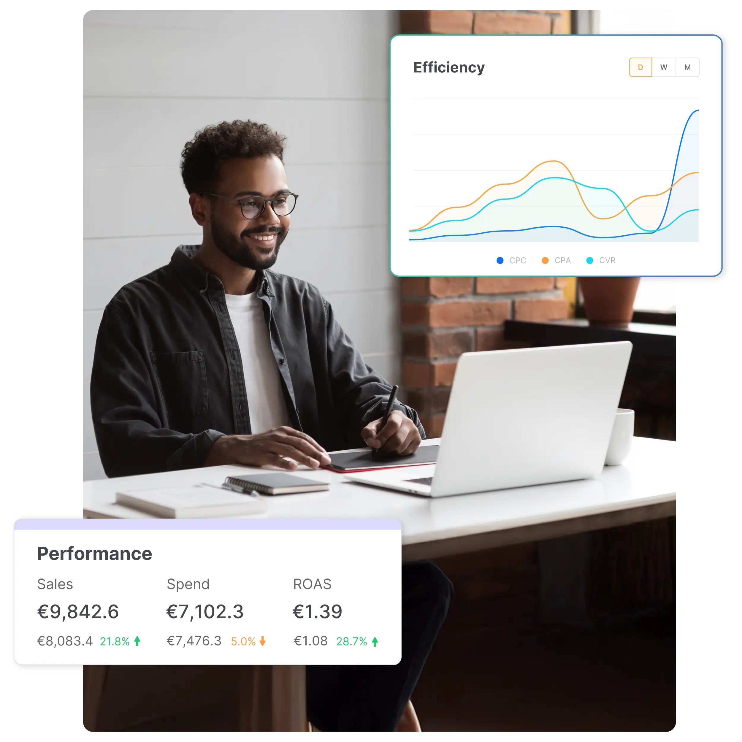 ルールベースの自動化、AI入札、時間帯別ターゲティング、および一元化された予算管理を活用して、パフォーマンスを拡大します。
