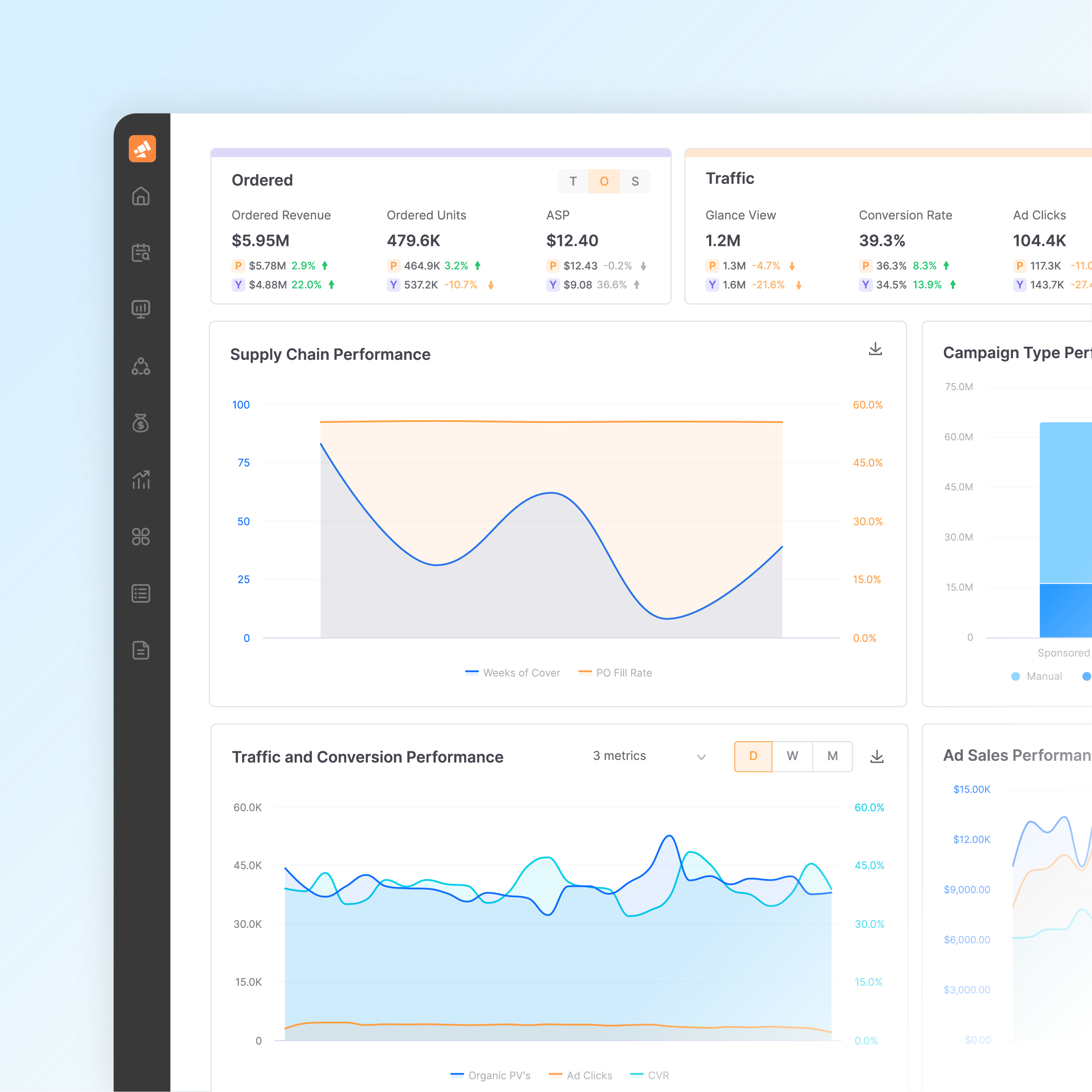 Pacvue centralizes data from disparate sources into one platform. Break down silos between sales, operations, and retail media, and unlock a full view of commerce performance.