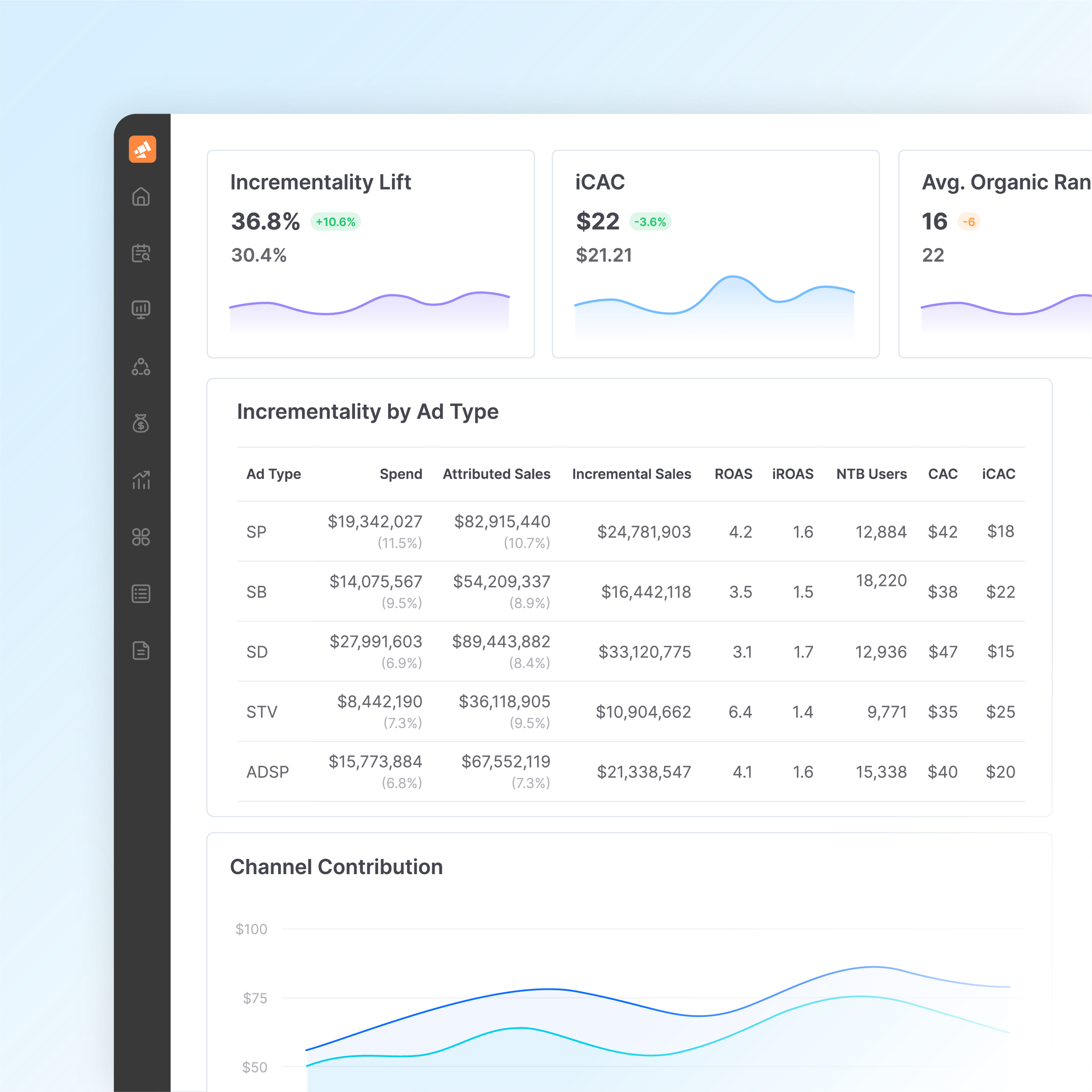 Compare incremental impact across channels to identify top growth drivers.
