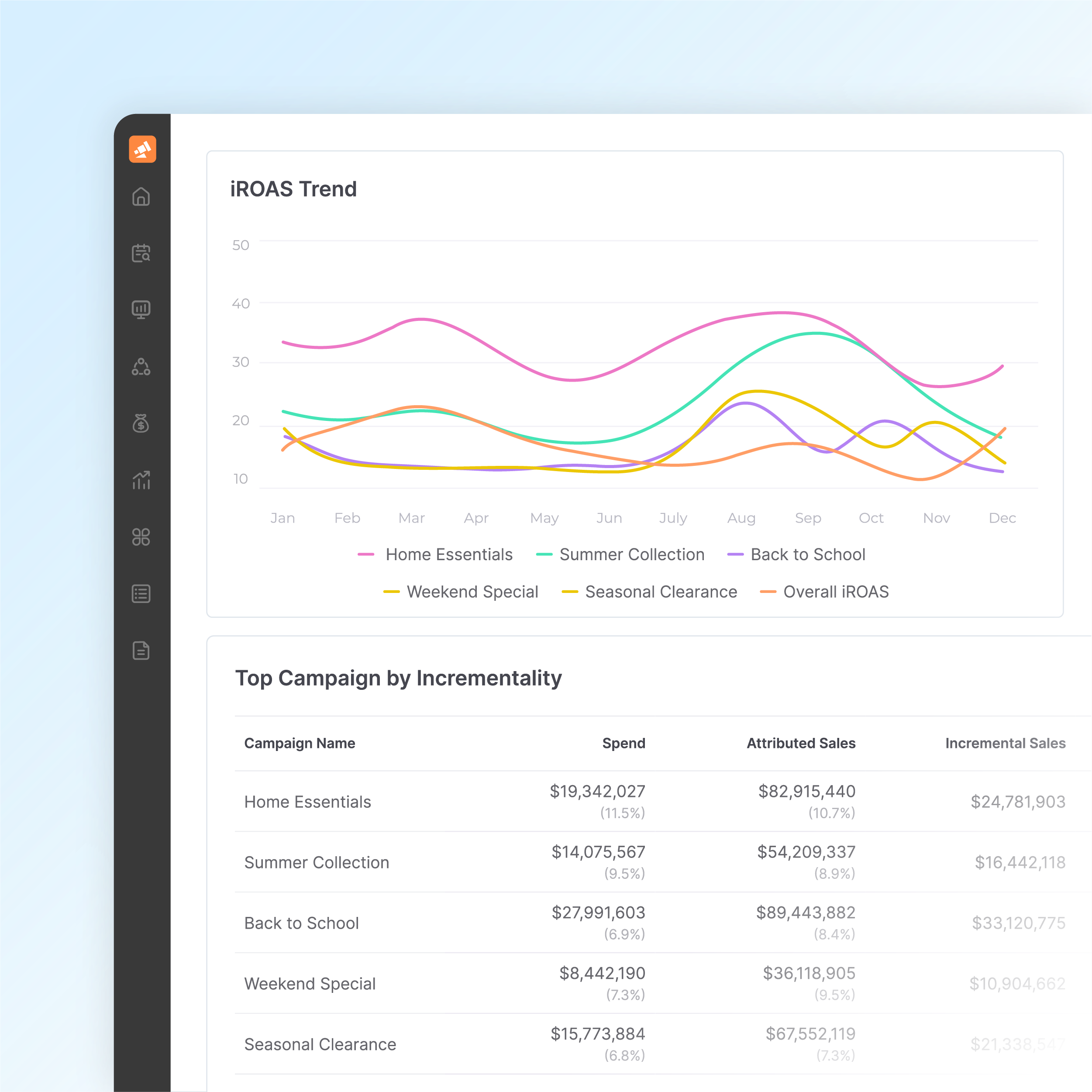 Measure incremental impact with iROAS and advanced models that isolate what truly drives growth.