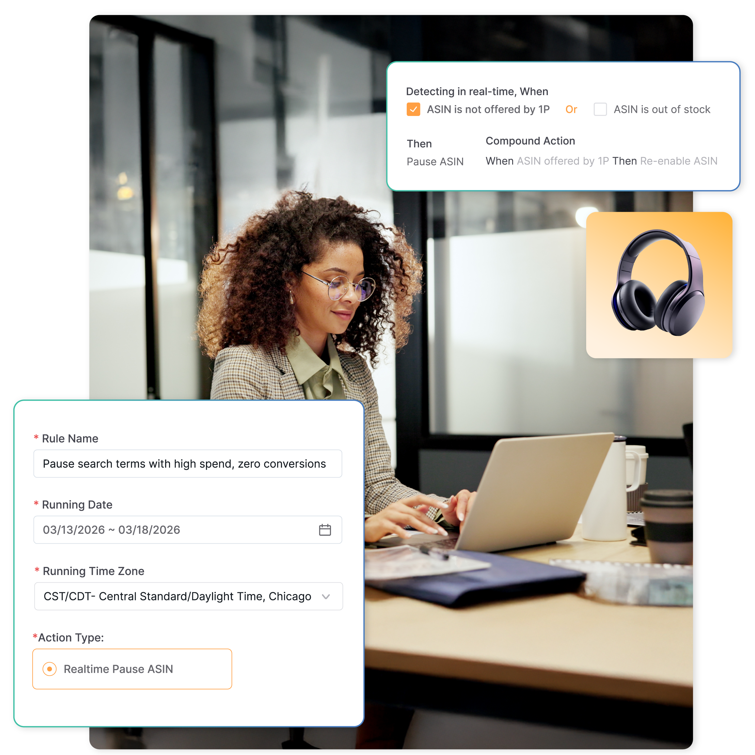 Detect performance changes instantly and trigger automated optimizations when inventory, Buy Box, or campaign conditions shift.
