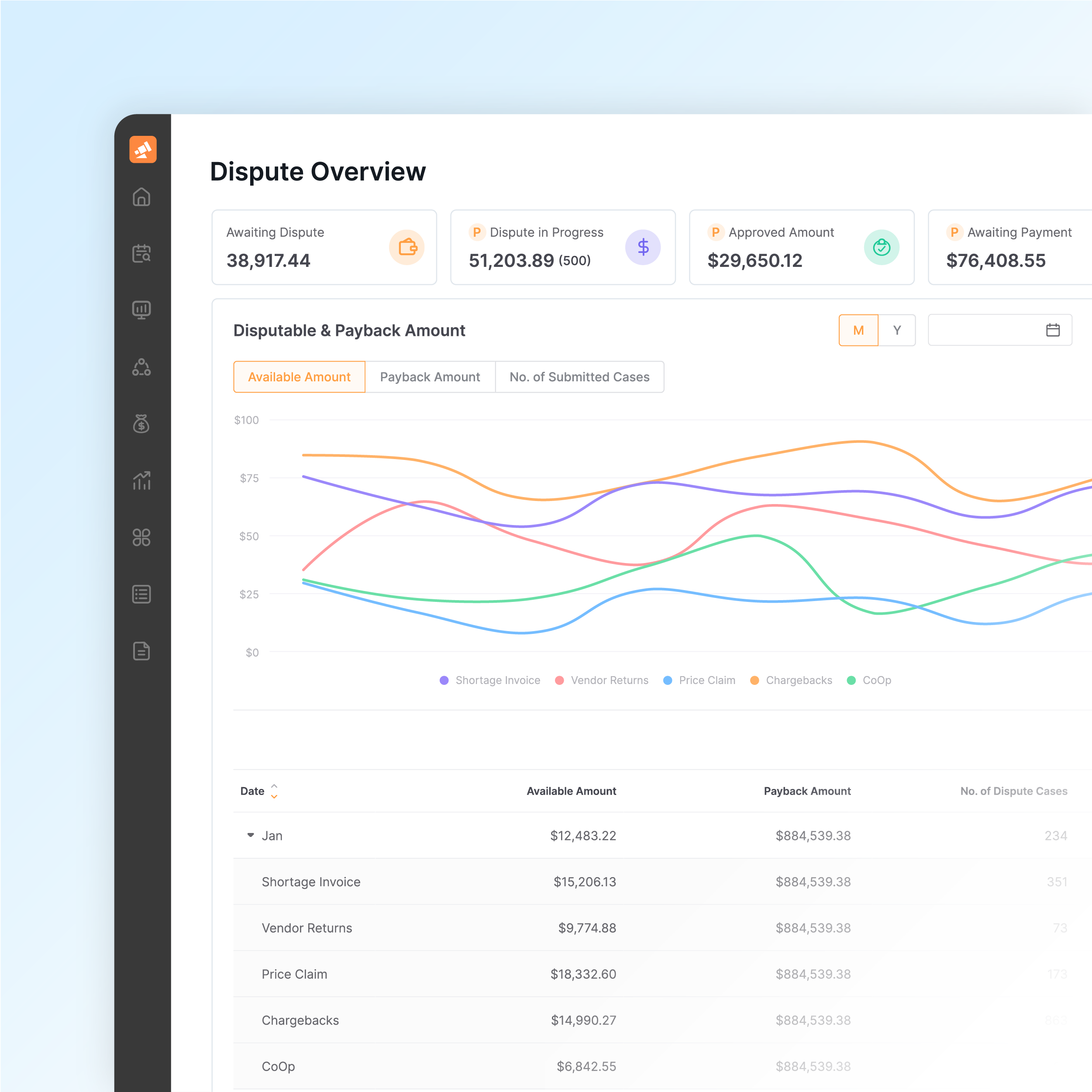 Identify shortages, chargebacks, co-op discrepancies, and price claims — then activate automated dispute workflows.