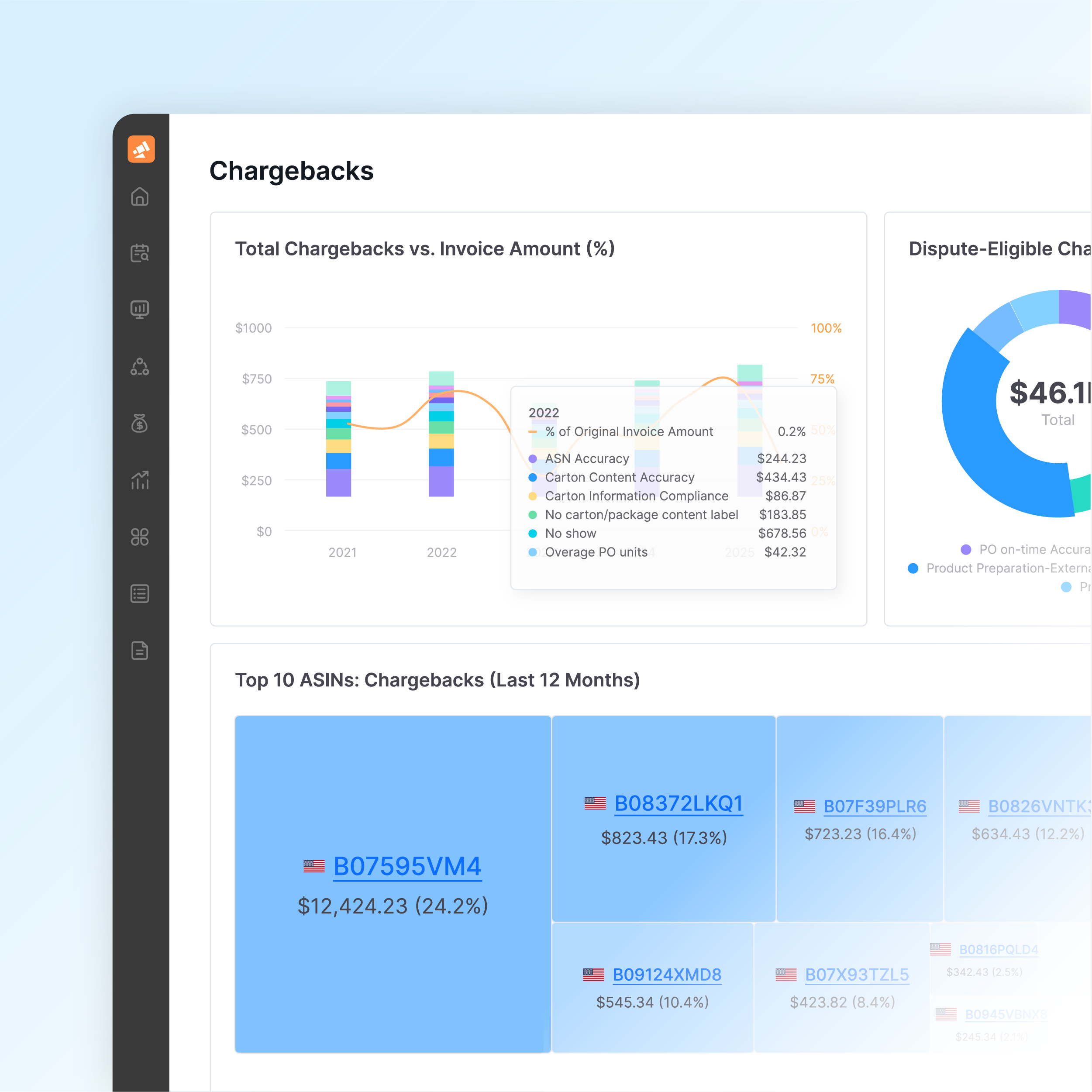 Identify recurring chargeback and shortage patterns by ASIN, lane, and program.
