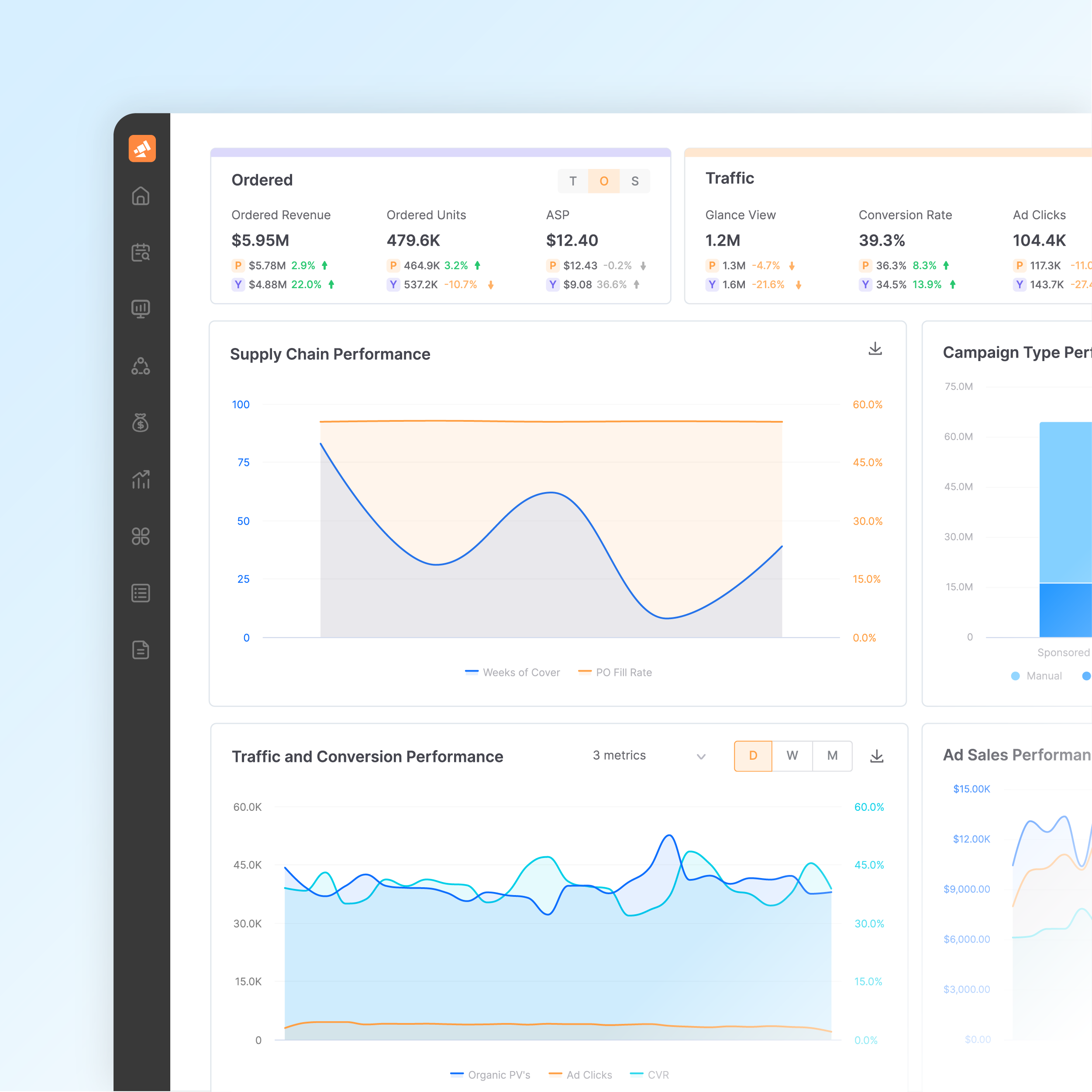 Consolidate sales, traffic, availability, inventory & purchase-position signals into one AI-powered operational view.